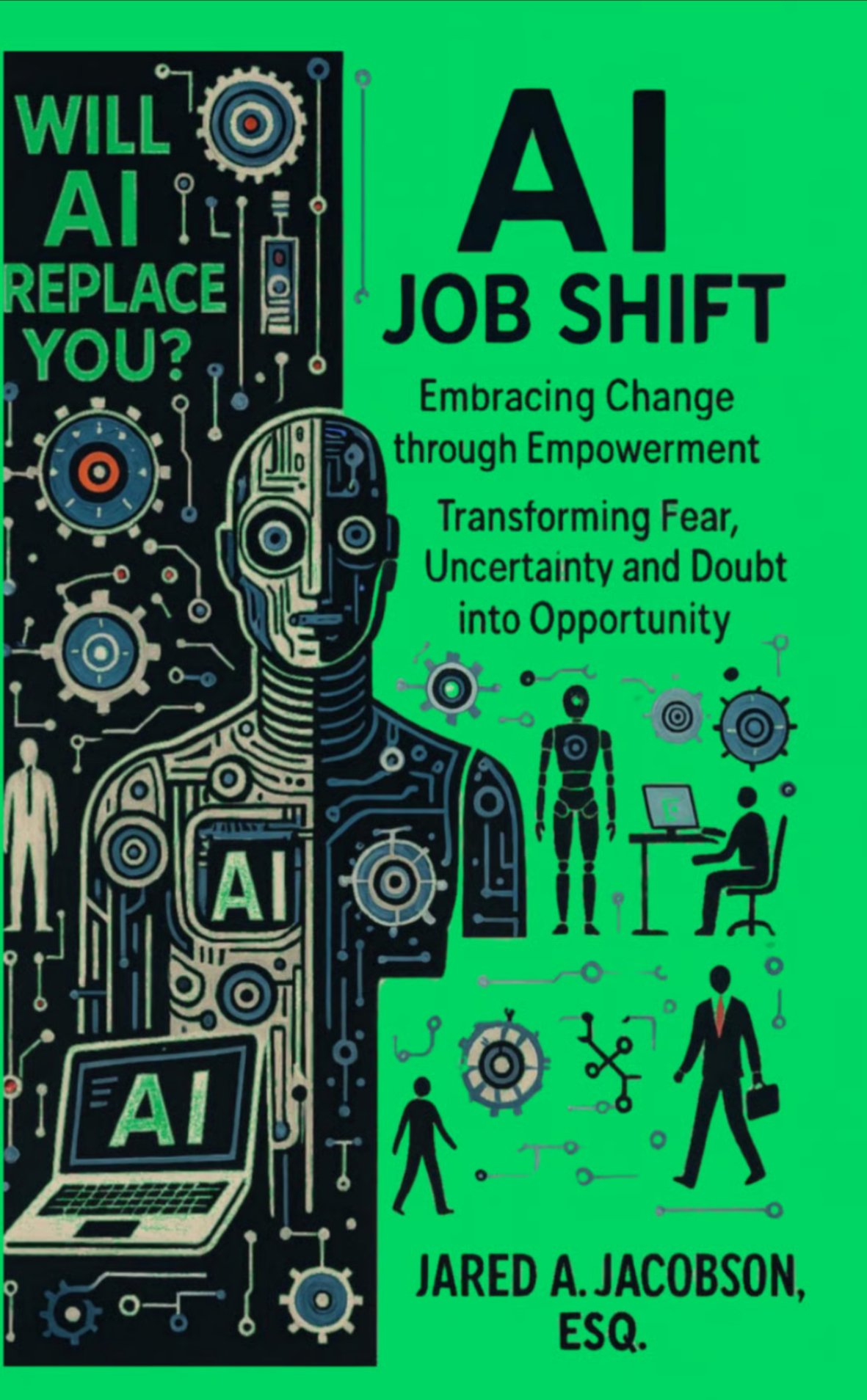 In "AI JOB SHIFT...WILL AI REPLACE YOU?!", Lawyer and AI optimist Jared A. Jacobson, Esq. offers a practical, inclusive, and inspiring roadmap for anyone interested in exploring and navigating the AI Revolution - regardless of background, demographic and starting point - meeting YOU where you are at NOW!